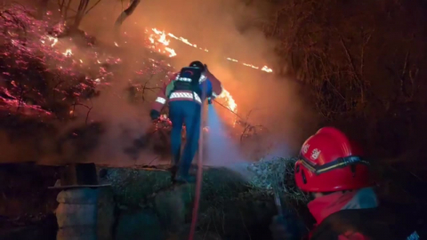 복면으로 얼굴을 꽁꽁 가린 남성이 문 앞으로 다가옵니다.
